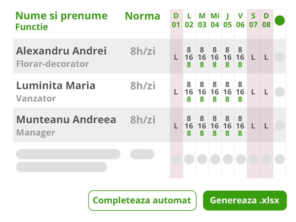 Reges Plus genereaza automat pontajul pe baza programului de lucru din REGES Online, reducand semnificativ timpul de completare si riscul de erori.